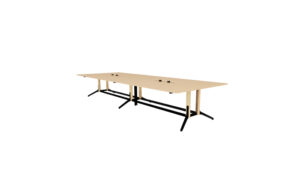 It blends wood and steel in a design that adapts seamlessly to the modern office, drawing on industrial aesthetics to emphasize clean structure and functionality. Integrated power tracks meet all your workspace electrical needs.